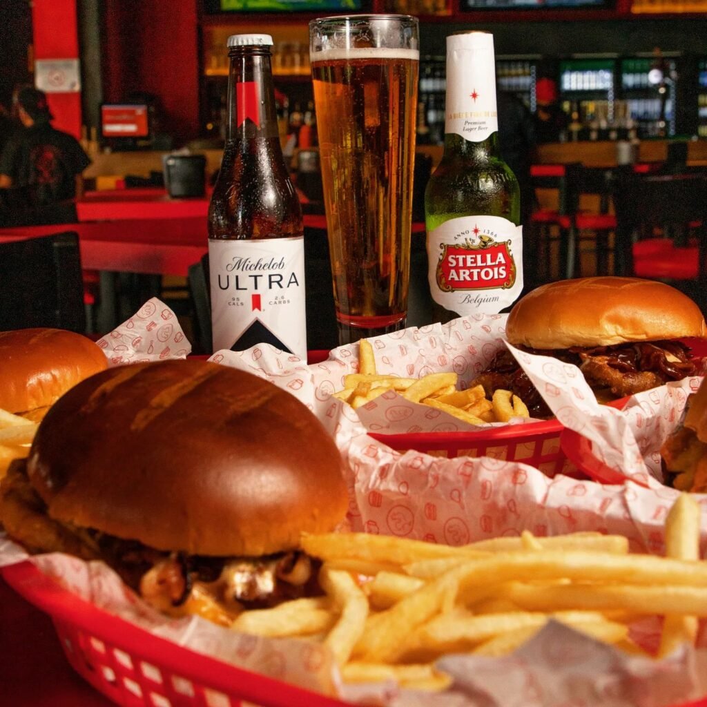 Restaurante familiar con alitas, hamburguesas y platillos para compartir, perfecto para disfrutar de buena comida mientras ves tus deportes favoritos.